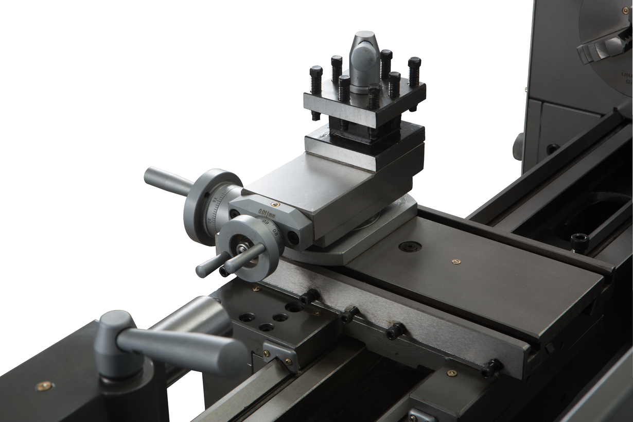 При всем при этом, у нас остается возможность изменения направления вращения шпинделя, как по часовой стрелки, так и против часовой стрелки. Возможность проточки малых конусов, за счет поворота каретки малой продольной подачи. Возможность юстировки задней бабки на 10 мм в обе стороны. Возможность регулировки клиновых планок на поперечной и малой продольной подачи, и много другое.